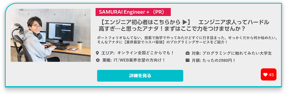 プログラミングの知識や経験がある学生歓迎!という求人が多いですが、未経験でも参加できるインターンシップも少なからず存在します。将来エンジニア職を考えている学生は、実際の現場を知る、経験を積めるので確実にインターンしましょう。